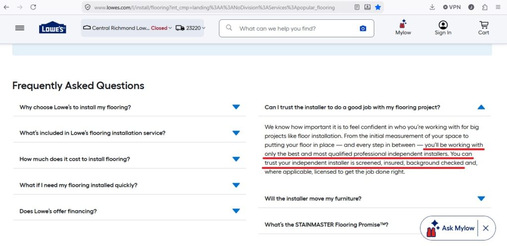 (2) Lowes’ promises regarding floor installations, and the quality of its installers