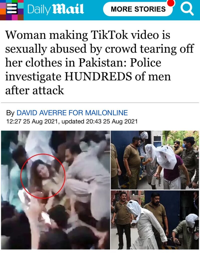 A female TikToker was molested, groped, sexually assaulted, and stripped naked by hundreds of Pakistani MusIim men during a Pakistan Independence Day event in Lahore.