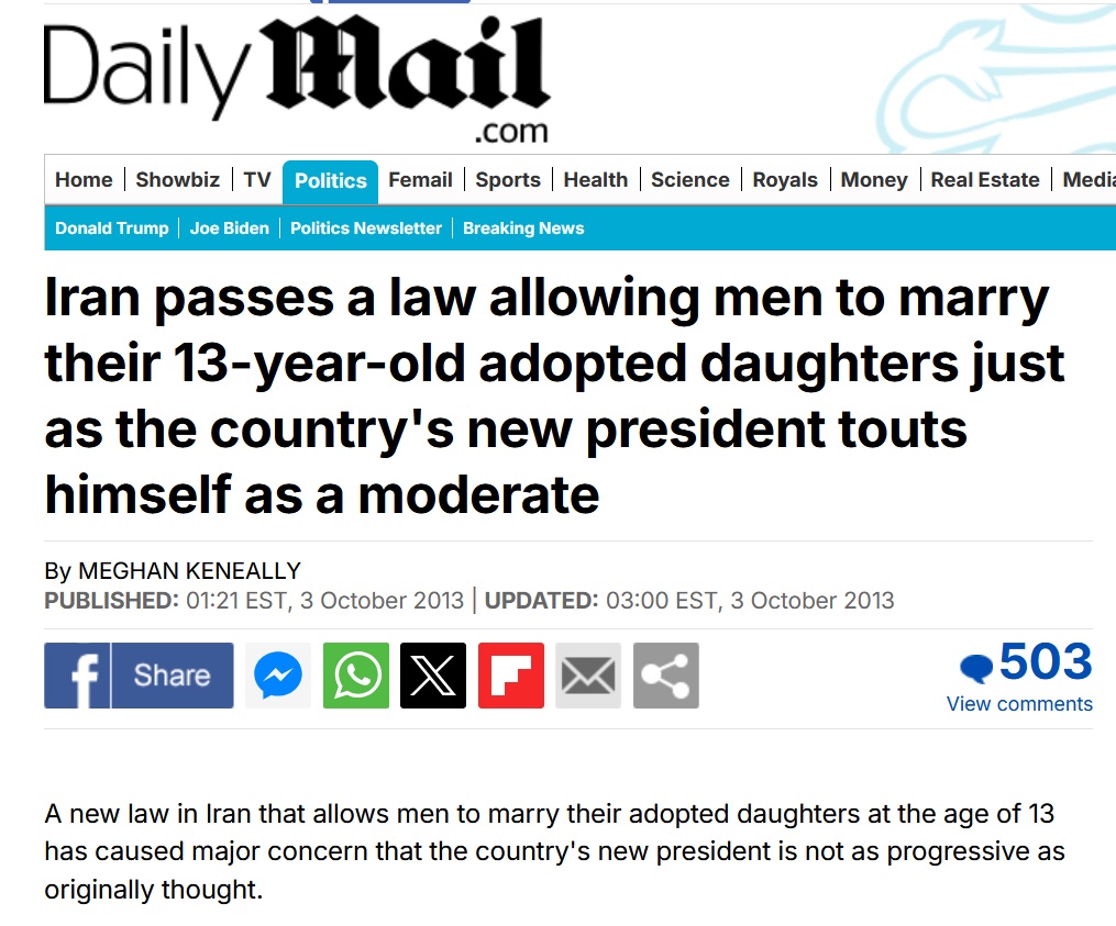 There’s no minimum age for a girl’s marriage in the Quran. Mohammed consummated marriage with a 9-year-old. It gives Muslim men the license for pedophilia. pic.twitter.com/MgNQgvgBUy