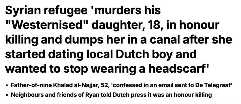 Reminiscent of this: “Mother and three daughters stabbed ‘for being inappropriately dressed’,” MetroUK, July 19, 2016.