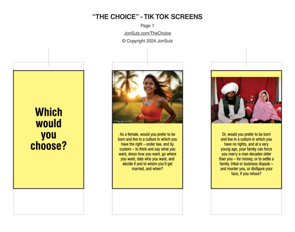 Here’s what I created — an opportunity for those young Americans, in particular, young females, to evaluate two alternative worlds in which they could live, and make a choice.