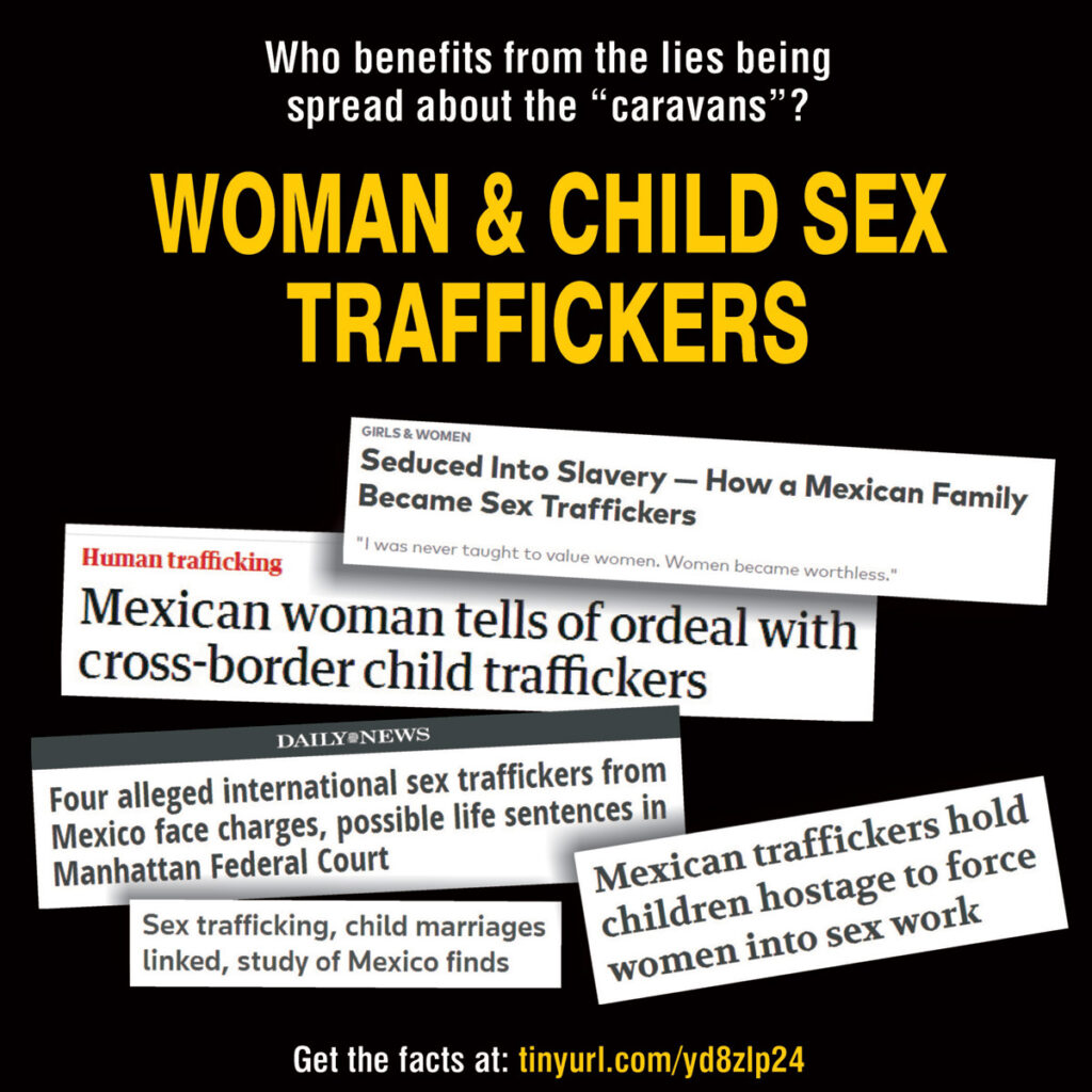 Who benefits from the lies being spread about the “caravans”? Woman and child sex traffickers.
